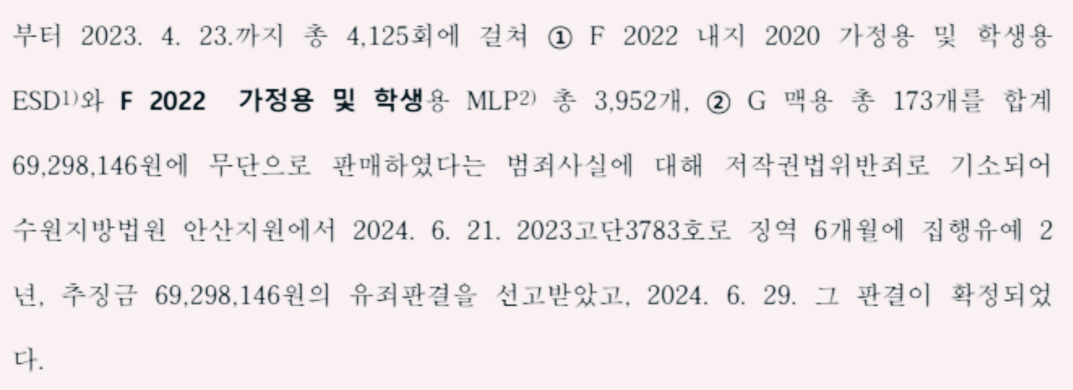 - 정식키가 아닌, 키젠등 인증프로그램을 판매하는 경우 등이 해당됩니다.